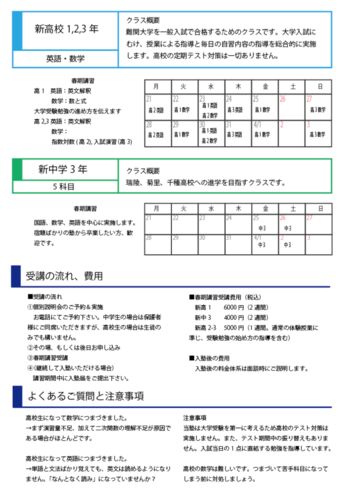 2016年春期講習の募集は終わりました。 相伝学舎の新年度の生徒募集状況を告知します。 新年度は 新高校3年、高校2年、高校1年および新中学3年 を募集します。 詳細は以下のとおりです。 入塾をご検討している高校生へ 相伝学舎は難関大学志望者(旧帝大、早…